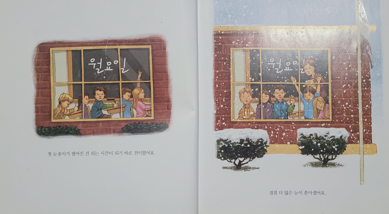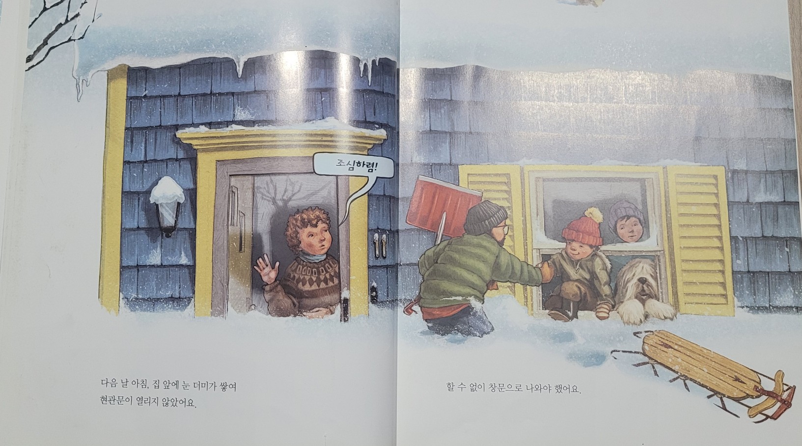 화요일, 집 현관문 앞에 눈이 쌓여 열 수 없게 되자 할 수 없이 창문으로 나와야 했어요.